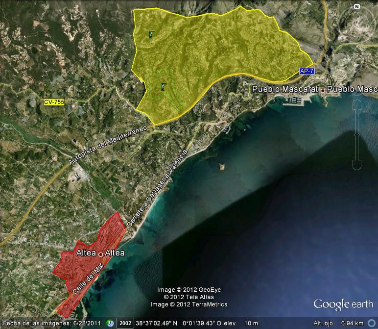 Hace unos veinte años se saltó en serio al norte de la autopista AP-7. Ballester empujó Altea Hills y muchos promotores iniciaron la aventura de la Sierra de Altea, la escalada del Bernia por su ladera sur, hacia el norte en una franja de unos cinco kilómetros, que va desde el campo de golf Don Cayo hasta el propio Mascarat. Doctores tiene la iglesia de la ciencia urbanística, pero yo creo que aquí se cometió un error de planificación, por simple escala, como la imagen refleja.